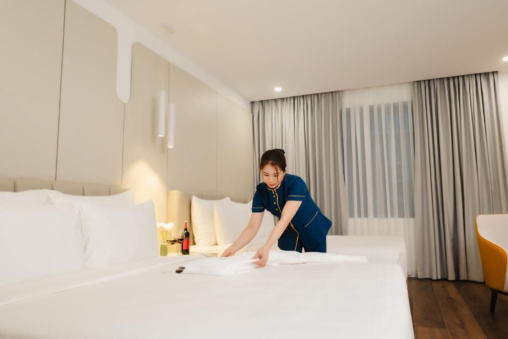 The rooftop pool is the standout feature of this double room. Featuring free toiletries and bathrobes, this double room includes a private bathroom with a bath, a shower and a bidet. The spacious air-conditioned double room features a flat-screen TV with cable channels, a mini-bar, a seating area, a wardrobe as well as city views. The unit has 1 bed.