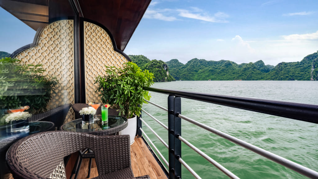 Located on the second deck, each of the 05 Senior Suites provides a broader view of Lan Ha Bay from the private balcony. With an exquisite design, the cabins are dazzling and reflect the crystal clear bay offering you great relaxation and purest enjoyment.